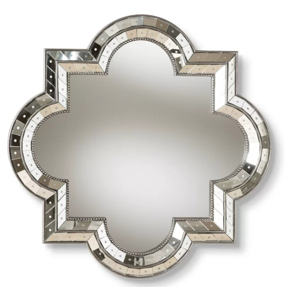 Venetian mirror fine engraved accents, the mirror is in overall good condition, just a darkened area in one of the side sections as shown in the photo, and a usual age spot here and there in the mirror glass.