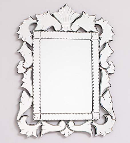 Venetian mirror fine engraved accents, the mirror is in overall good condition, just a darkened area in one of the side sections as shown in the photo, and a usual age spot here and there in the mirror glass.
