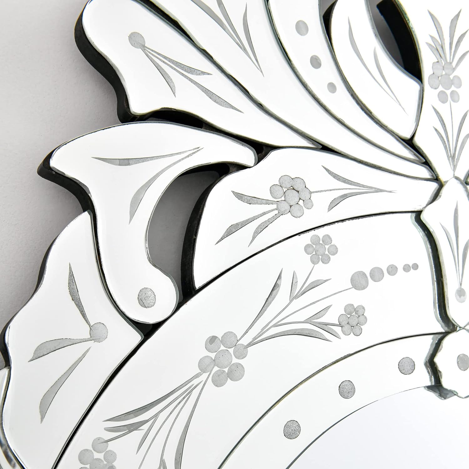 Venetian mirror fine engraved accents, the mirror is in overall good condition, just a darkened area in one of the side sections as shown in the photo, and a usual age spot here and there in the mirror glass.